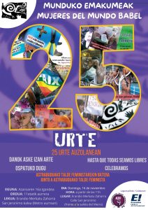Os esperamos con un programa intenso con las siguientes actividades 11:00 ESPECTACULAR RECIBIMIENTO¡piensa bien por dónde entrar!Maribi-Pili-Isabel-Begoña HARRERA IKUSGARRIA,ondo pentsatu nondik sartuko zaren!Maribi-Pili-Isabel-Begoñarekin 12:00 ”LAS LIMONERAS“ enredan y resisten conMaite txiki-Cony-Itxiar-Emilia «LIMOIZALEAK» endredatzen eta eustenMaite Txiki-Cony-Itxiar-Emiliarekin 14:30 Intercambiamos SABORES:trae algo ...